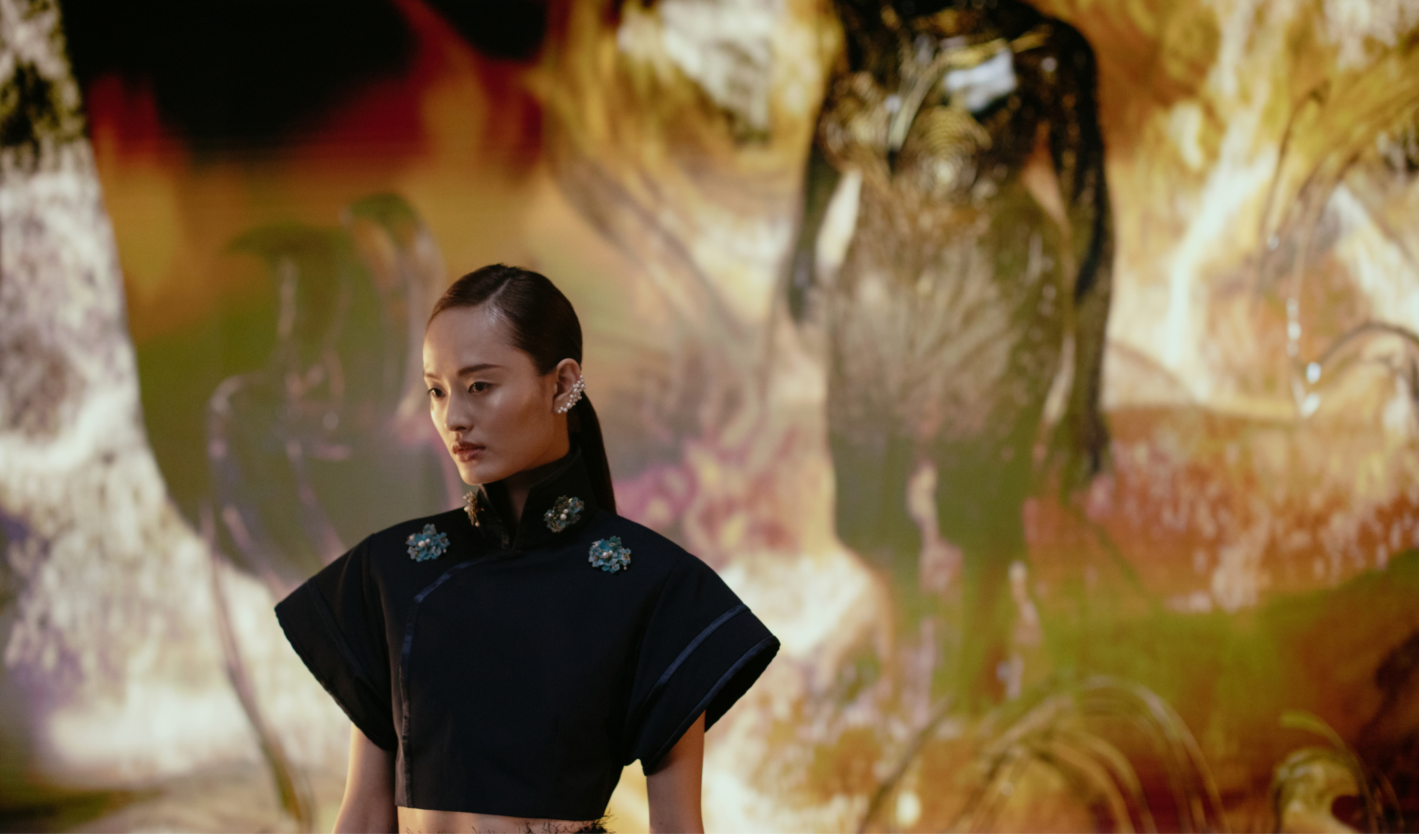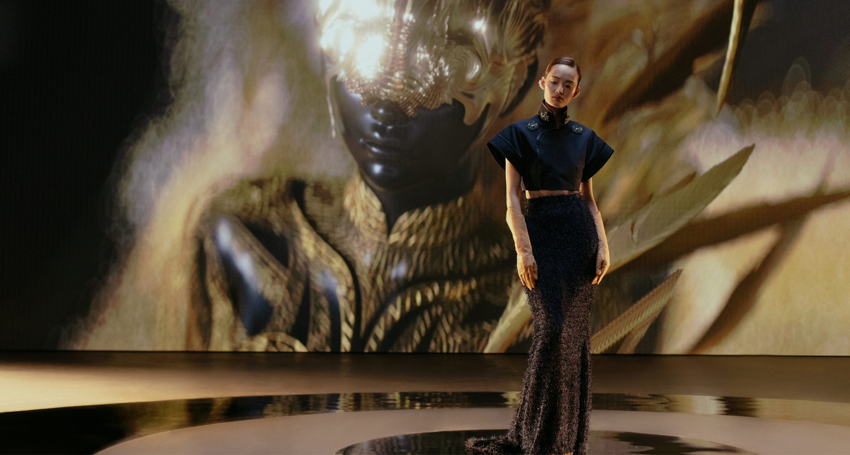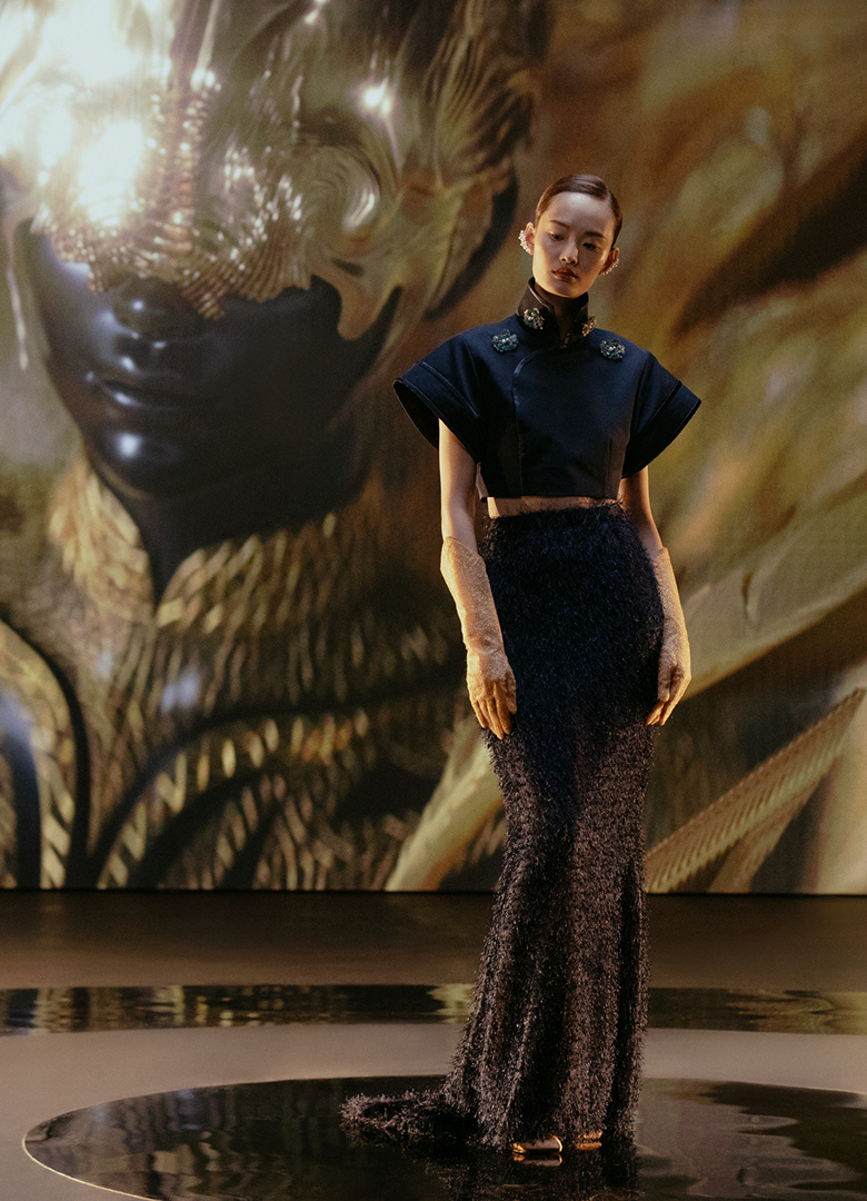 Can bridging tradition with innovation preserve a lost ancient craft? Victoria Tang-Owen and Yimeng Yu combine disciplines and create two looks that serve as a portal between the physical and digital worlds.